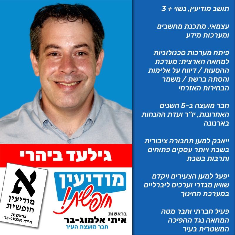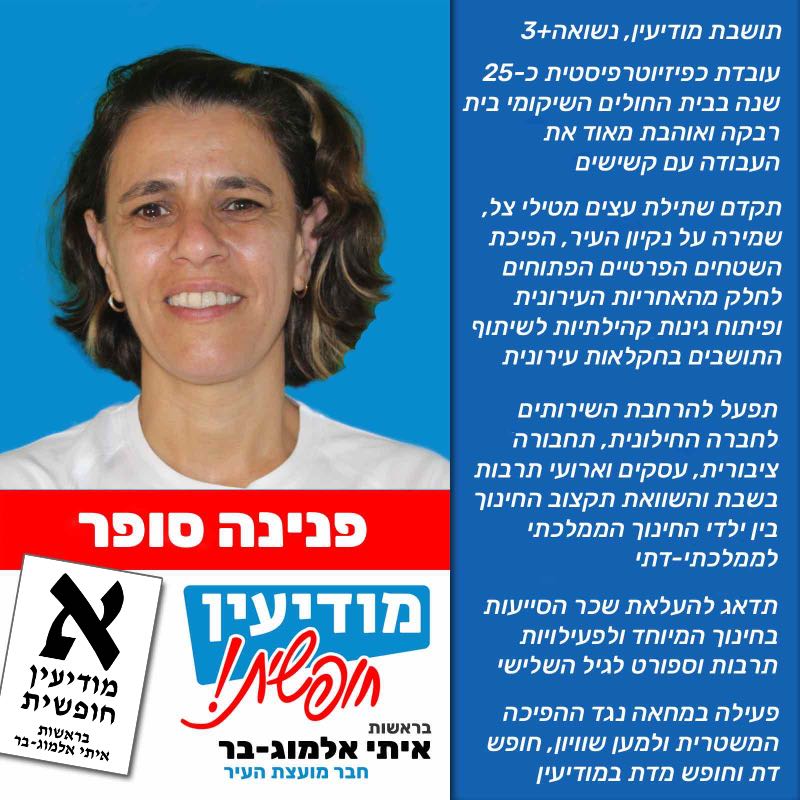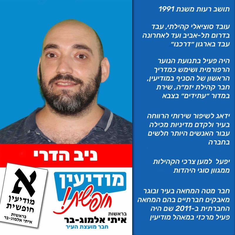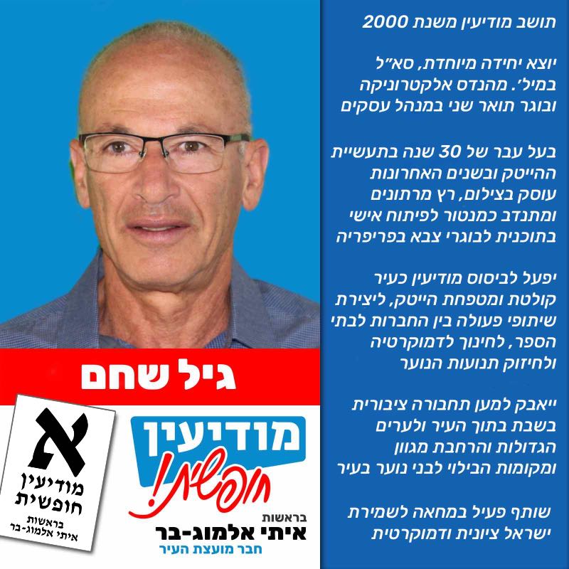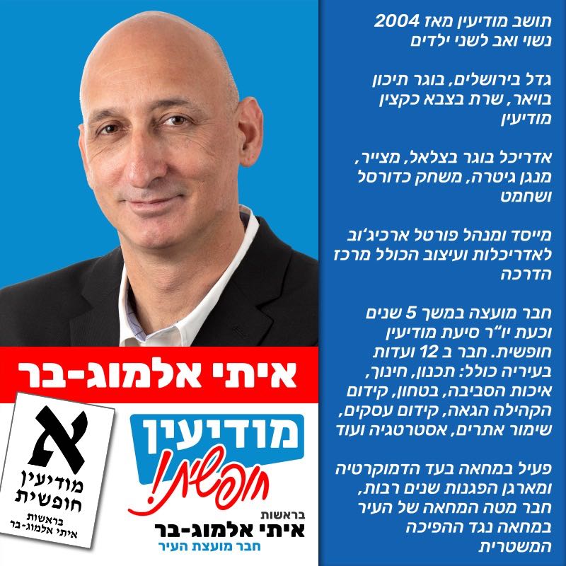 סיעת מודיעין חופשית מתמודדת לבחירות המקומיות כדי לשמור על מודיעין-מכבים-רעות חופשית שוויונית ודמוקרטית!