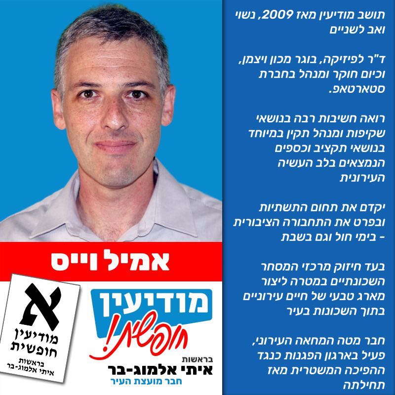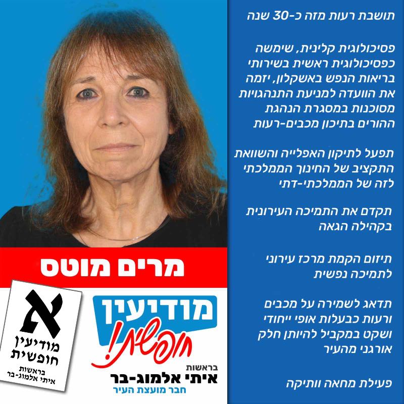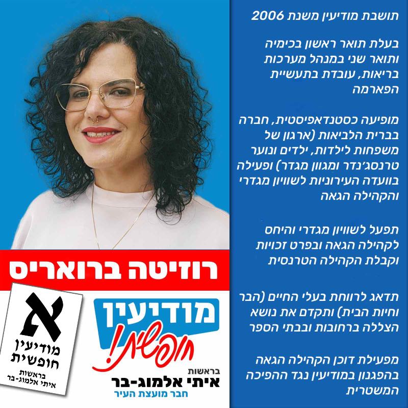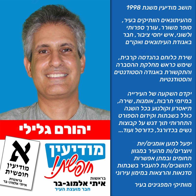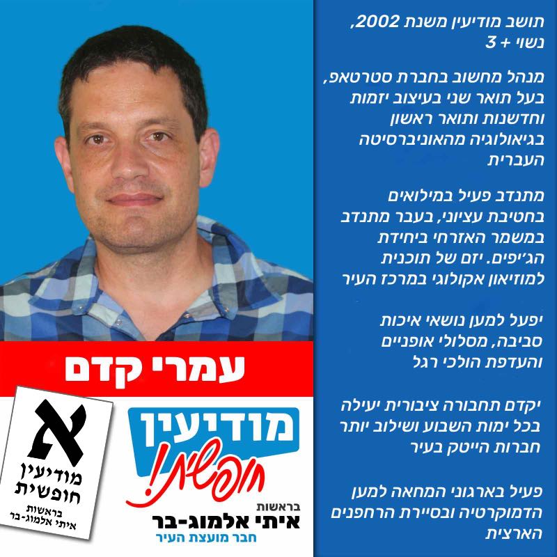 סיעת מודיעין חופשית מתמודדת לבחירות המקומיות כדי לשמור על מודיעין-מכבים-רעות חופשית שוויונית ודמוקרטית!